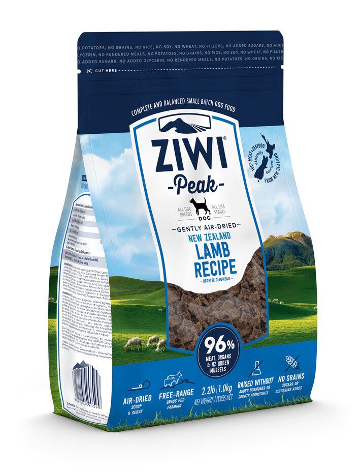 ZIWI Peakエアドライ製品は、肉・内臓・魚介類・骨を、犬や猫が自然界で狩りをして得る獲物に近い栄養バランスで配合。スーパーフードを追加し、穀類は一切使用していません。