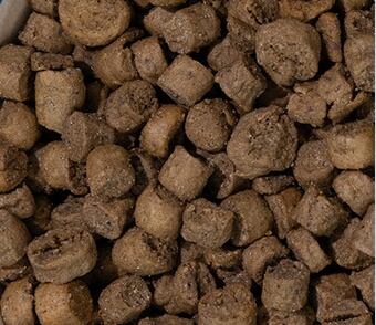 原材料には、新鮮な生肉や内臓、魚介類を85%使用し、さらにニュージーランド産の野菜や果物をプラスしてバランスよく配合。これらをブレンドした後、蒸気処理を行い、一口サイズにカットしてからゆっくりとエアドライすることで、素材本来の栄養価を保っています。