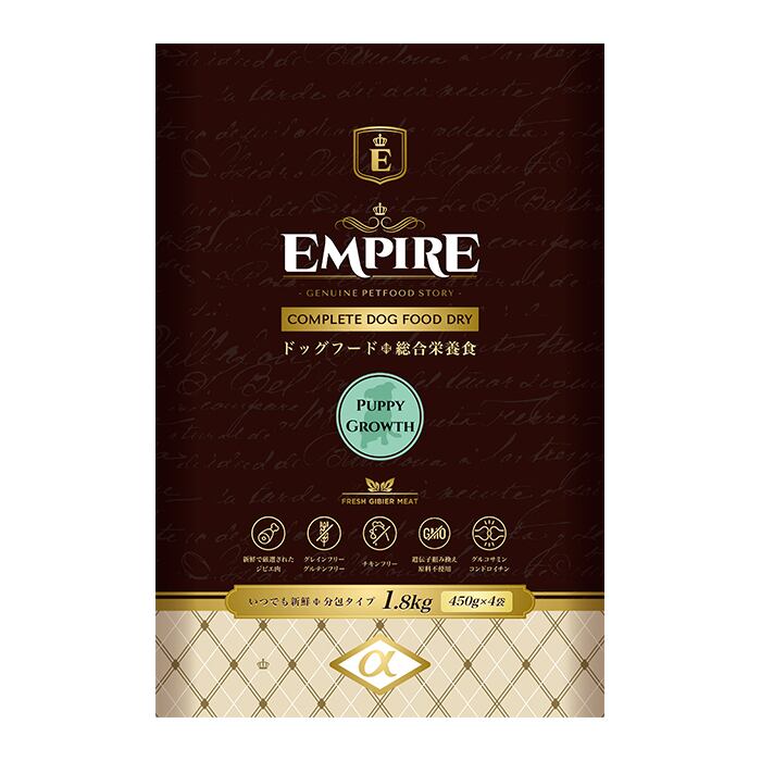 生後12ヶ月までの子犬にはEMPIRE PUPPY GROWTH DIETを与えることをお勧めします。また、妊娠中や授乳中の母犬にも最適です。