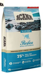 「アカナ パシフィカキャット」は、魚肉、内臓、骨を含むホールプレイ比率(下記参照お願い致します)のニシン、サバ、カレイ、ヘイク、メバルを豊富に使用した魚を中心に配合したキャットフード。母なる自然がもたらした新鮮な原材料をたっぷり使用し、愛猫が健康的にたくましく成長するためのお手伝いをします。オメガ3が多く皮膚・被毛の健康を気にされている子のオススメです。